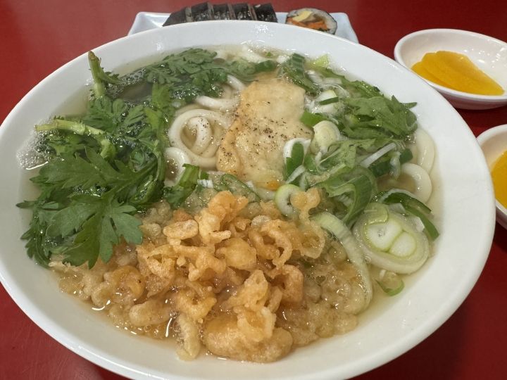 旅行前の情報では何も出てこなかったお店ですが、はやっていたので、ランチタイムに食べに行きました。釜山に来て食べ物美味しくて食べすぎで胃が疲れ気味にぴったりのうどんをイートインキンパをお持ち帰りでオーダーしました。