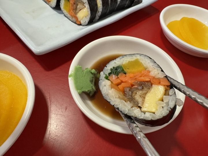 更に、一緒に頼んだキンパも、これまで食べて来たものとは違って、明らかに店の味って感じが旨かった。ん~ふらっと釜山も面白いなと思った。ちなみに、隣のカップルは、汁なしとえび天が入ったのを食べてたが、あれも旨そうだったな。