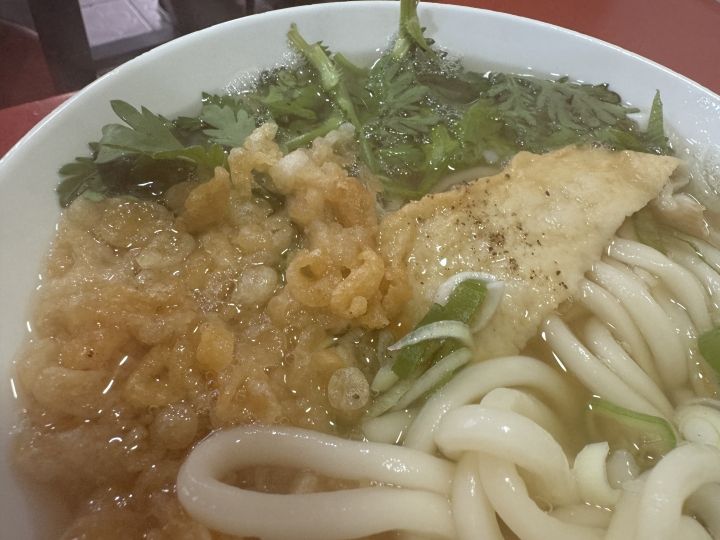 もしくは、トッピングなしで良いの?みたいなことを聞いたと思うので、はいと答えた。出てきたうどんは日本の物とは微妙に違うが、ダシが効いてて旨い。