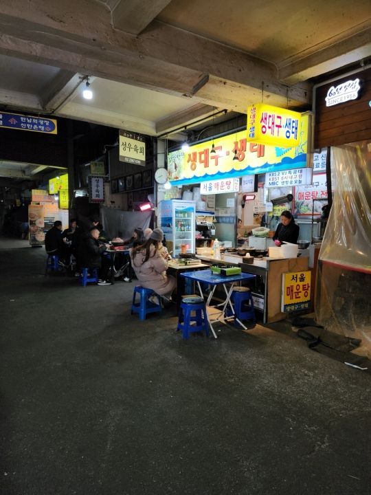 今がまさに旬の時期のタラを食べに、クァンジャンシジャンまでやって来ました。