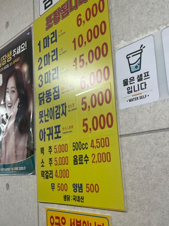 相変わらずの良心的なお値段で、チキン1羽と生2杯で10000ウォン。