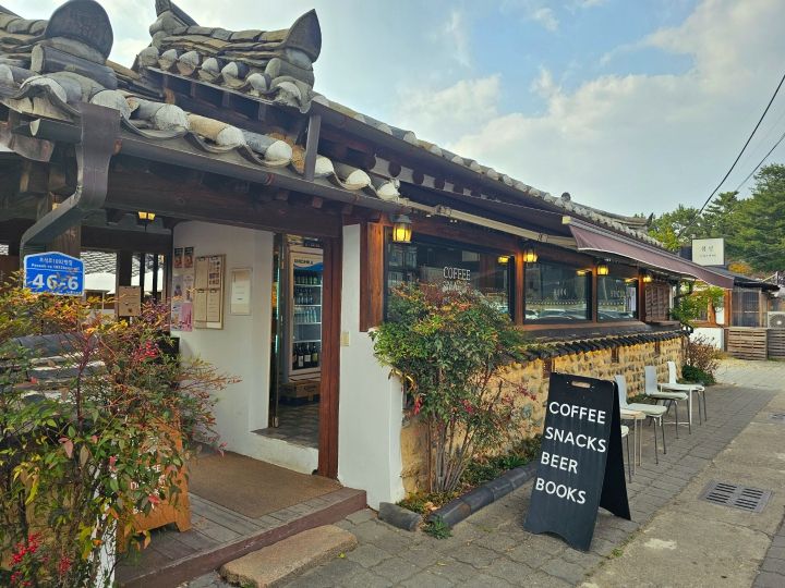 慶州「大陵苑」入口近くの韓屋ブックカフェ