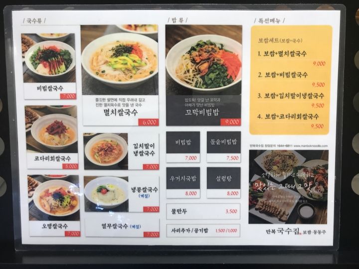 | 主なメニュー | 麺、ビビンバ、ポッサムなど |