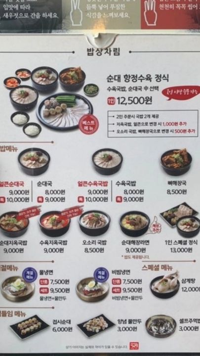 | 主なメニュー | スンデクッパ(スンデグッ)、クッパ、ヘジャングッなど |