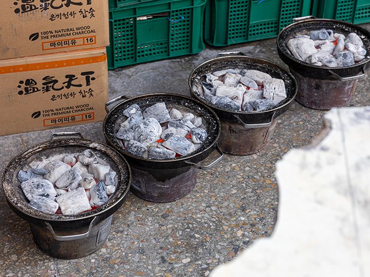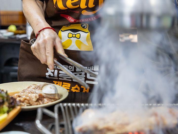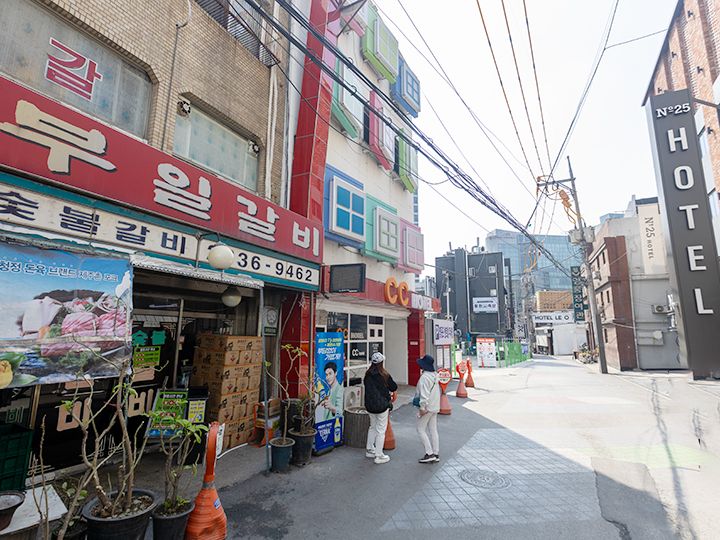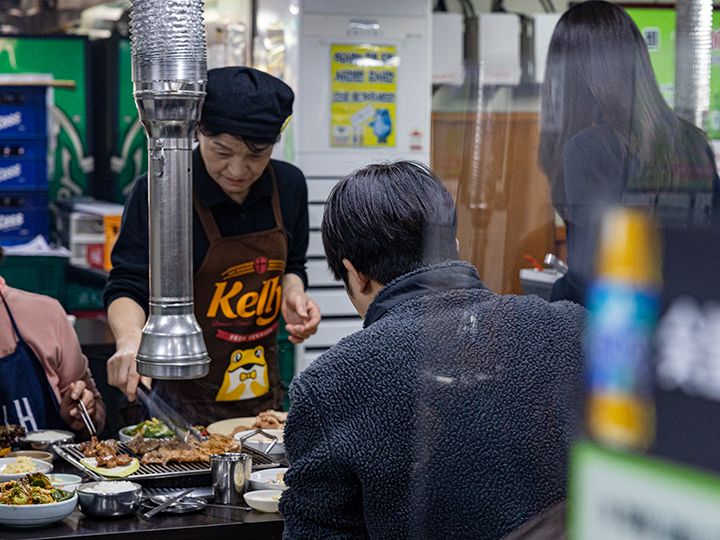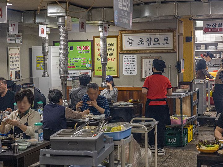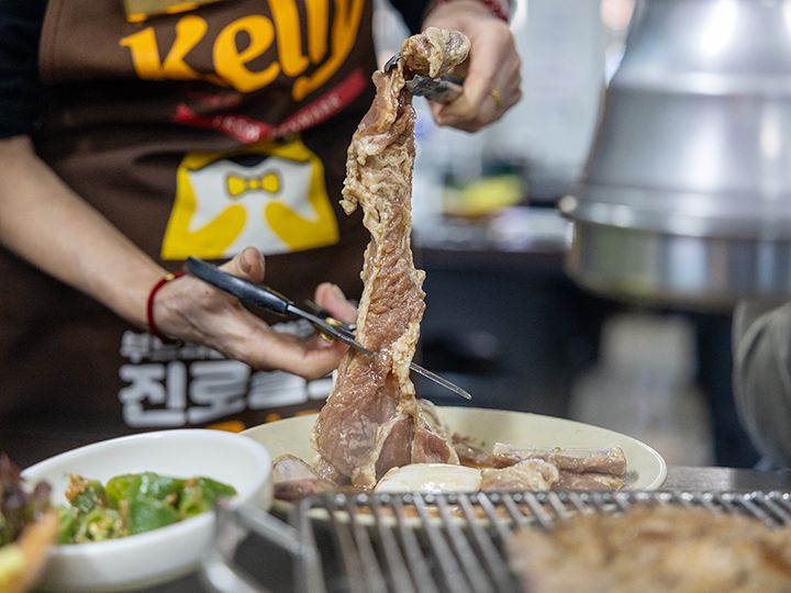 「プイル炭火(スップル)カルビ」は、ソウル・永登浦(ヨンドゥンポ)の飲み屋街にある、豚カルビ専門の焼き肉店です。この焼肉店は1996年にオープンし、当時の雰囲気をそのまま残したレトロ食堂。入口には「プイルカルビ(부일갈비)」と昔ながらの大きな看板が掲げられています。年季の入った店内で、タレが良く染み込んだテジカルビを炭火で焼いていく様は、まるで90年代にタイムスリップしたかのよう!味と雰囲気、接客やサービスが抜群だという評判が広まり、永登浦の人気行列店になりました。韓国の芸能人にもファンが多く、2025年にはNETFLIX(ネットフリックス)のグルメ番組「隣の国のグルメイト」(松重豊、ソン・シギョン出演)の韓国・ソウル編で「テジカルビ人気店」として紹介されました。