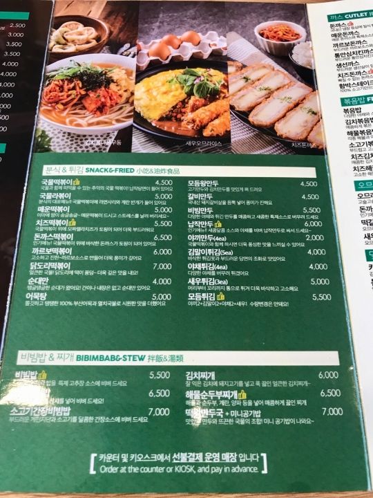 | 主なメニュー | キムパッ(韓国海苔巻き)、トッポッキ、トンカツなど |