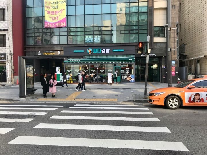 弘大の大通り沿いにある人気海苔巻きチェーン店