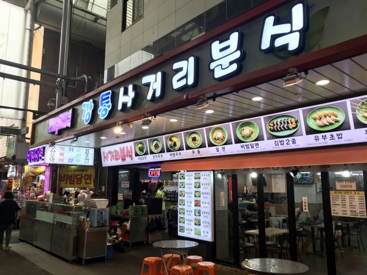 富平カントン市場内交差点にある市場ならではの軽食店