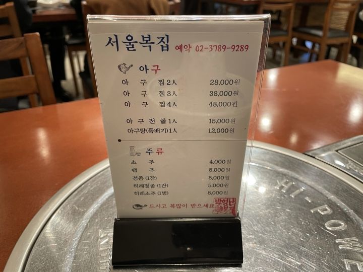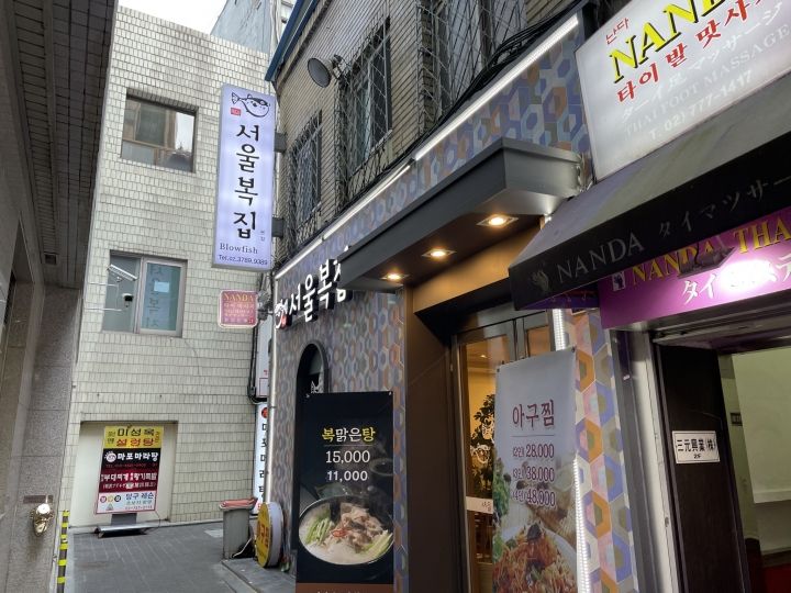 明洞の路地内にあるフグ専門店