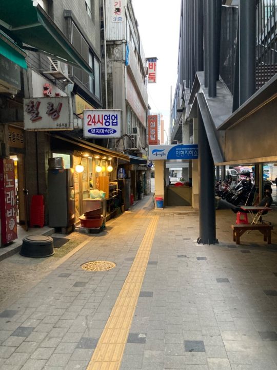 今回はホッケ(イミョンス)定食を注文して美味しくいただきました。醤油に付けることなく、そのままでとても良い塩加減で、ご飯がとても良く進みました。この辺りは昔ながらの定食店が集まっていて良いですね。