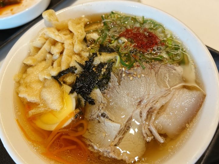 晋州コホン麺は温かい魚醤スープにネギ、チャーシュー、