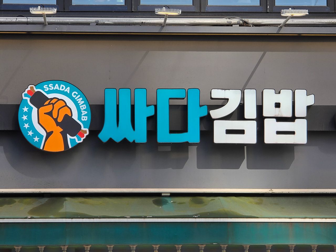 「サダキムパッ」は、韓国の丸い海苔巻き(キムパッ)をはじめ、チゲ、トッポッキ、インスタントラーメンなどを1人でも利用しやすい軽食チェーン店です。ブランド名の「サダ(싸다)」は「安い」という意味の韓国語です。似た業態のチェーンに「キムパッ天国」や「キムガネ」がありますが、20~30代の若い世代を主なターゲットに、「安く!おしゃれに!」をコンセプトとして差別化を図り、清涼感のあるグリーンとネオンブルーをブランドカラーに採用し、カフェのように明るく入りやすい空間を演出したことヒットし、短期間で全国へとチェーン展開が進みました。