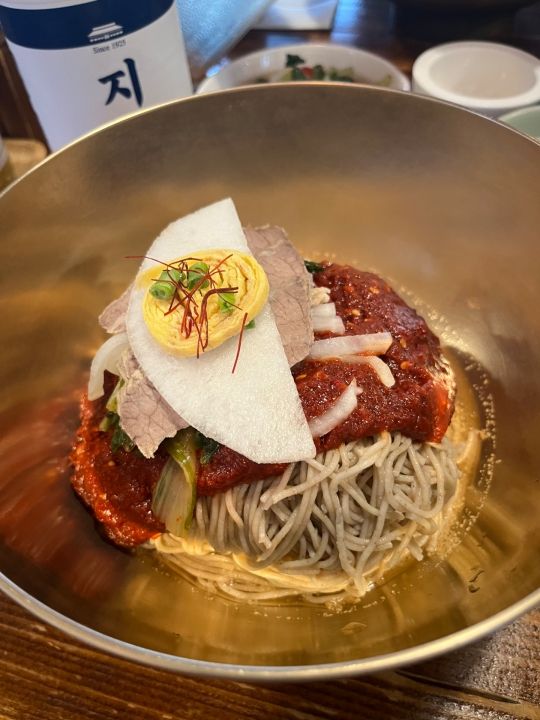 ピビン冷麵はそれほど辛くなくまろやかな味です。
