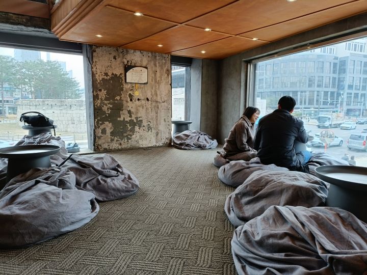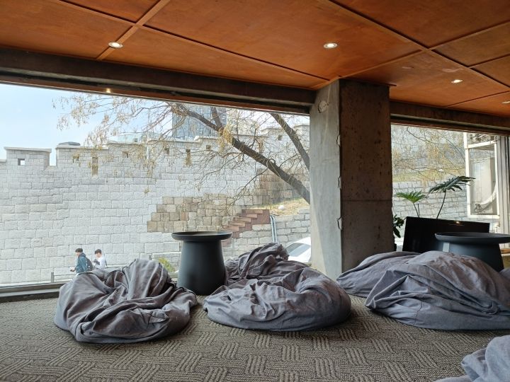 東大門の焼き魚通りで食べて、何処かでまったりしたいなぁ!と入ったら大当たりCAFEでした!観光客より地元感強め、2階のヨギボーぽいのが並ぶ特等席からは東大門やソウル城郭が見えてとても落ち着いた雰囲気です!期待せずにオーダーした抹茶ケーキこれが絶品で長居してしまいました