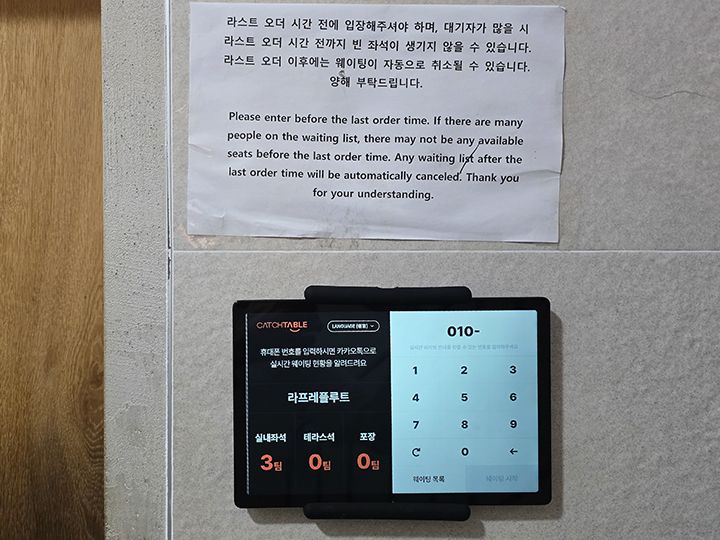 eSIMがないと010のモバイルナンバーがないので入口の機械でウェイティング登録できず不便ですが、店員さんに声をかけてインスタのアカウントを伝えれば自分が何番目かを教えてくれて、それから順番がきたらインスタにDMでお知らせしてくれます。