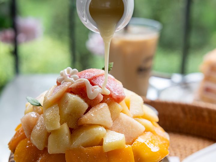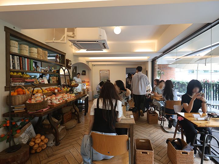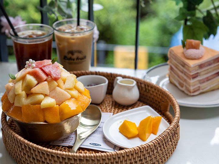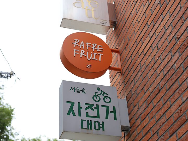 「ラフレフルーツ(RafreFruit)」は、産地直送の高級フルーツを使ったソウルで大人気のデザートカフェです。夏のマンゴー、冬のイチゴを中心に、初夏はメロンやトウモロコシ、秋は桃やイチジクなど季節限定メニューも登場します。アップルマンゴーは高級ホテルに納品している済州島の農場から取り寄せ、桃は農業技術名人の称号を得ている桃園から取り寄せるなど、生フルーツはどれも一級品ばかり。値段もプレミアムな分、ショートケーキもピンス(韓国のかき氷)も全部美味しい!と評判で、オープン前からお店の階段や、建物の外にまで行列ができます。聖水店は「ソウルの森カフェ通り」の一番奥にあり、ウェイティングの登録機器は室内席・テラス席・テイクアウトの3つから選べます。