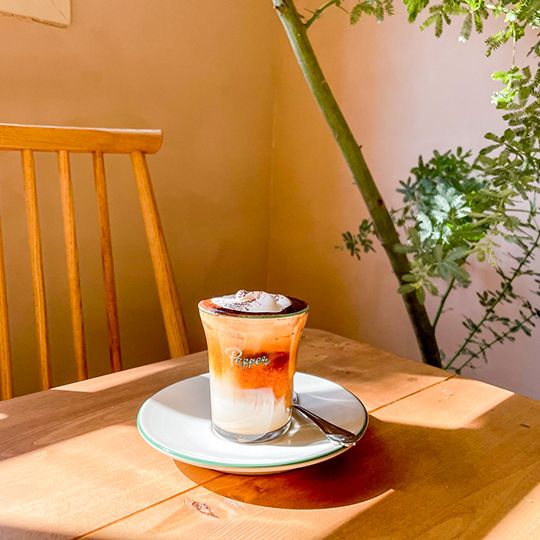 「CafePepper(カフェペッパー)」は、ソウル・蚕室(チャムシル)の「石村湖(ソッチョンホス)」南側カフェ通りの「松理団通り(ソンニダンキル)」にある人気韓国カフェです。2021年2月のオープン後、カフェ激戦区にあっても安定して営業を続けています。お店は建物奥の階段をあがった2階にあり、店内に足を踏み入れるとヨーロッパの家庭的な雰囲気で、デザートの陳列台も華やか。どこで写真を撮っても「映え」ることでしょう!そしてこのカフェで一番の注目ポイントは、全デザートが「グルテンフリー」で作られてる点です。小麦粉を一切使わず、米粉だけでケーキ、パウンドケーキ、スコーンなどを美味しく仕上げました。健康志向の方や、小麦アレルギーがある方などにおすすめです。