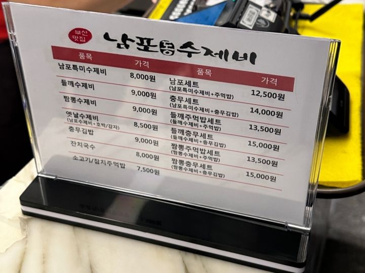 | 主なメニュー | スジェビ、クッパ、キムパッ(韓国海苔巻き)など |