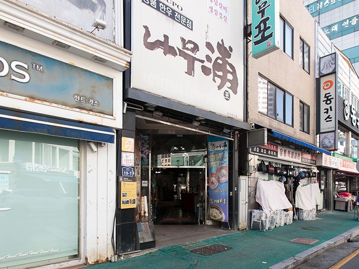 木浦(モッポ)という地名は、かつて南浦(ナムポ)からナム(木を表す)浦、ナムゲを経て、木浦と変わっていったという歴史があります(「浦」は港という意味」。そんなかつての地名「ナム浦」を店名とし、木浦の歴史を大切にしているのが窺い知れる店舗で、30年以上営業を続けているので、お店の看板も年季が入っています。毎朝、新鮮な牛カルビを仕入れ、りんご・梨・生姜・唐辛子などの素材を使って柔らかくてジューシーな味付けカルビに仕上げています。牛肉の他にサムギョプサルやモクサルといった豚肉も取り扱っています。木浦駅から歩いてすぐという立地の良さもあり、観光客にも利用しやすい焼肉店です。