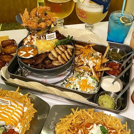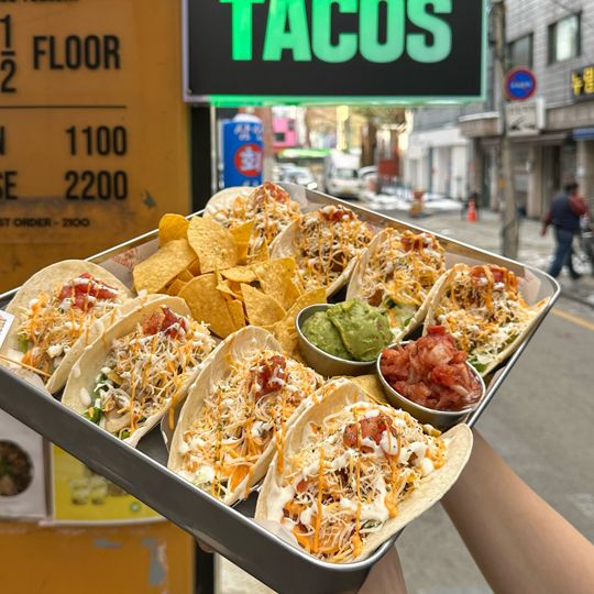 「TacoTuesday(タコ・チューズデー)」は2022年、ソウルの人気エリア・聖水洞(ソンスドン)でオープンしたメキシコ料理店です。スパイシーなタコスを韓国人向けの味付けにアレンジし、近くでショッピングやカフェ巡りをする20~30代の間で大ヒット。一気にウェイティング・行列ができる人気店となりました。グループで注文するのに良いプレートメニューから、おひとりさまでも注文できる単品メニューまでさまざま。ビールやカクテル、テキーラに良く合う味付けでビジュアルも抜群。写真を撮ってから味わってみませんか?最寄り駅は聖水洞やソウルの森の玄関口、地下鉄2号線のトゥッソム駅です。路地内、ビルとビルの間にお店の入口があります。