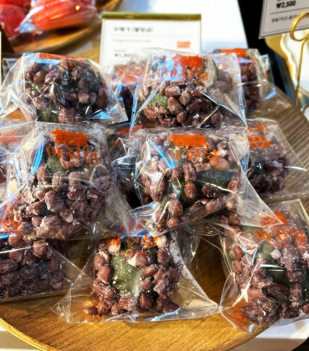 オメギ餅を発見した時は 「あっ」っと声が出てしまいました。済州島のオメギ餅〜この上なく柔らかくて、塩味甘味のバランスが絶妙で 忘れられないオメギ餅。やっとソウルで出会う事が出来ました。数あるお餅屋さんへ伺う度に探していたオメギ餅がこちらにあるとは…感激の瞬間でした。