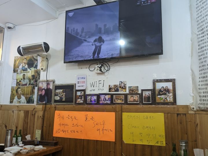 奥のほうの空席を探して着席して、スンデクッとソジュを注文。