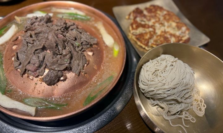 平壌冷麺、温麺、ビビン麺、プルコギ+麺の替え玉