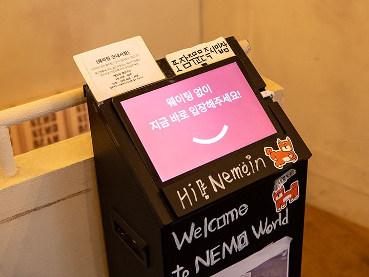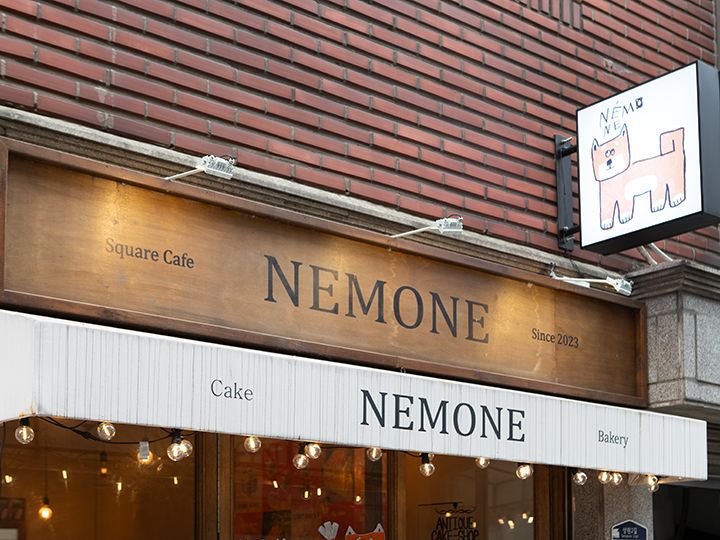 店名の「ネモネ」は韓国語で「四角い家」という意味で、お店の動物キャラクターからショートケーキ、ドリンクのコップまで全てが四角くデザインされました!ケーキは季節のフルーツを使っていて、夏はメロンやマンゴー、秋は桃やイチヂク、冬は苺(イチゴ)など、訪問する度に異なるケーキに出会えることでしょう。聖水洞(ソンスドン)を代表する人気カフェだけあって、週末を中心にウェイティングがあり、1階のウェイティング機器を操作して待てばOK。最寄り駅は地下鉄2号線の「トゥッソム駅」で、隣駅の「聖水(ソンス)駅」からはやや歩きます。お店は階段を降りた地下1階にあり、1階の入口はウェイティングスペースとして活用されています。