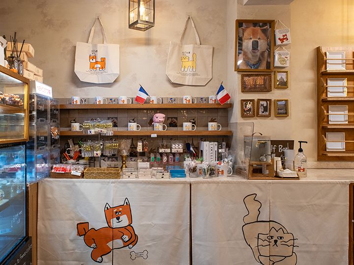 まず、このカフェのキャラクターがとってもかわいいわんちゃんのキャラクターが至る所にいて、店内にはグッズの販売まであります♩