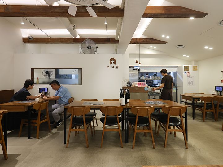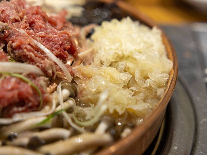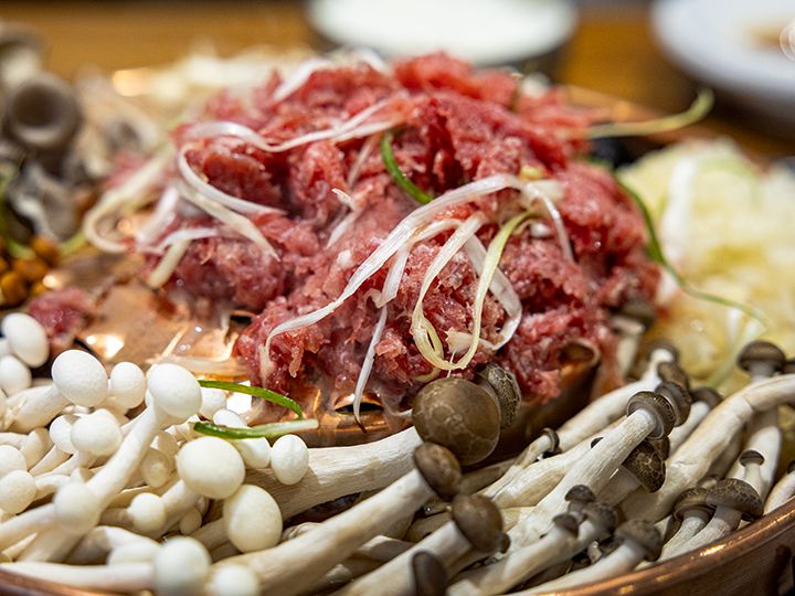 韓国語で「ポソッ=きのこ」「チッ=家」なので「キノコの家」という意味のレストランです。店名の通り、キノコをたっぷり使った栄養満点の韓国料理が食べられ、メニューは2人前以上から食べられる「キノコ入りプルコギ鍋(ライス別途)」と、ご飯付きで1人前の土鍋で運ばれてくる「きのこスープ」の2つに分けられます。一番人気はプルコギ鍋で、中央で焼く牛肉の周りにシロキクラゲやシイタケなど8種類のキノコが添えられ、野菜や果物で作った出し汁に、煮れば煮るほどキノコの旨味が加わっていきます。美容にも良いとされ「食べるエステ」とも呼ばれる薬膳キノコ鍋はいかが?場所は「ソウルの森カフェ通り」にあって、この辺りのカフェ巡り、芸能事務所めぐりのランチや夕食にオススメです。