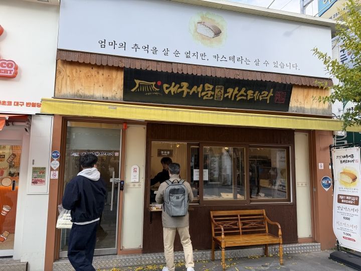 薬令市場で行列ができるカステラ屋さんの半月堂店