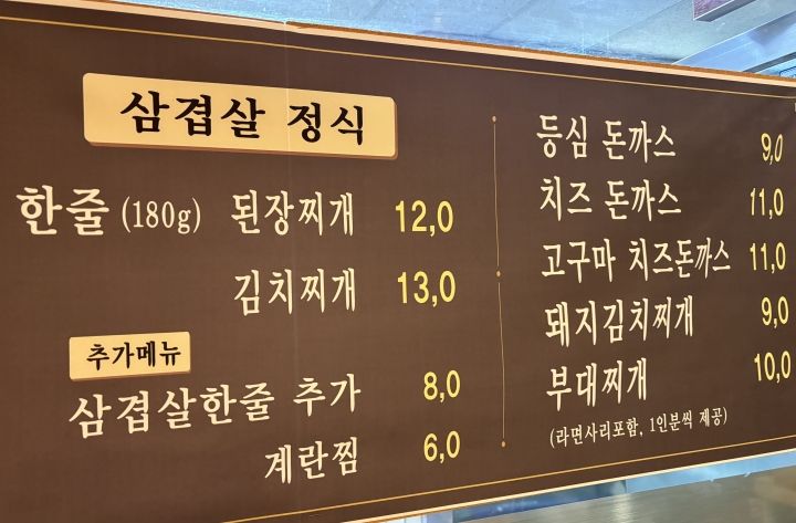 | 主なメニュー | サムギョプサル定食、キムチチゲ、プデチゲなど |
