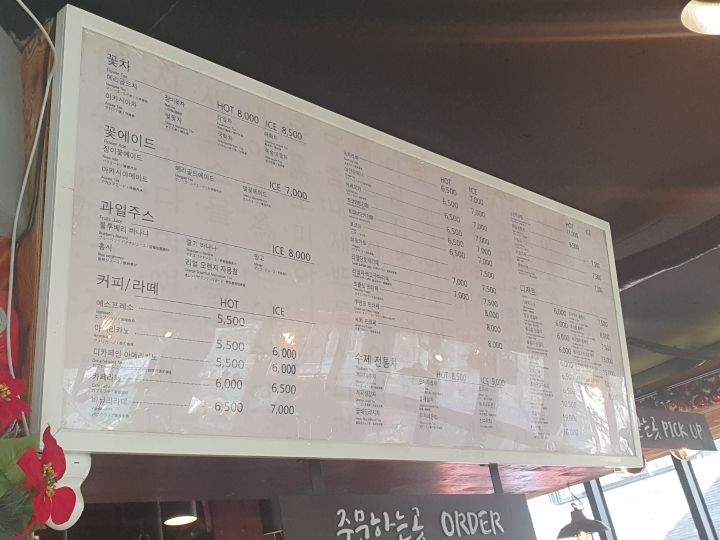 人気はオミジャ茶だそうで、バラの花を使ったエイドやコーヒー類、シナモン生姜茶もよく出るそうです