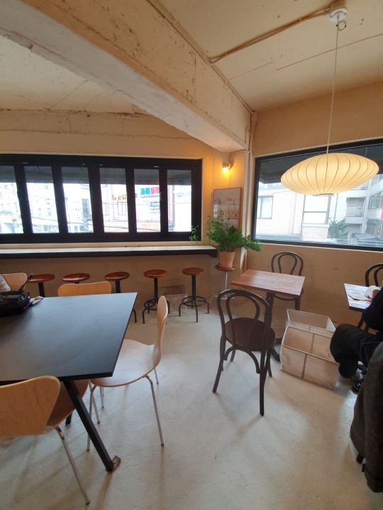 塩パンの店がソールドアウトで食べられなくて代わりに見つけたこちらのお店に寄りました。店の外の左手にある階段を登ると2階にイートインスペースがあります。私が入った時は混んでおらずすぐに席が取れました。