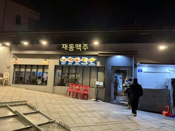 北村韓屋村の小学校前で夜、チメク!