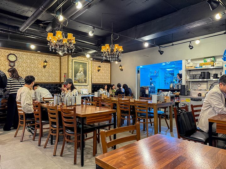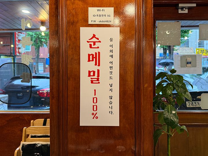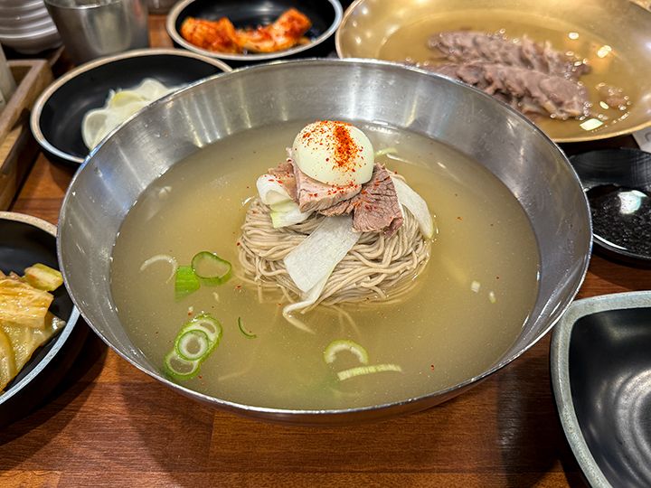 ソウル東南部、地下鉄3号線と5号線が乗り入れる「梧琴(オグム)駅」の閑静な住宅街にて2019年にオープンした平壌(ピョンヤン)式冷麺の専門店です。社長が独学で学んだという平壌冷麺で、そば粉100%で作り上げた麺とスープが美味しいと評判を呼び、2025年に「ミシュランガイドソウル」のビブグルマンに選定されるまで登り詰めました。蕎麦の風味たっぷりの優しい味わいです。店内は中世ヨーロッパを彷彿とさせるシャンデリアなどのインテリアや内装もすべて社長が1人で完成させました。「梧琴駅」から地下鉄5号線に乗れば「オリンピック公園駅」まで2駅なので、ここでランチをとってから「KSPO DOME」や「オリンピックホール」などの公演会場に向かうコースはいかがですか?