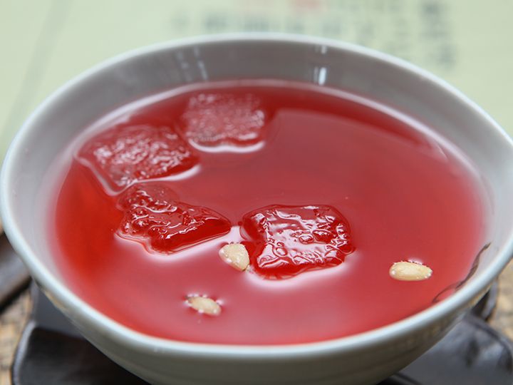 かりん茶をお願いしたのですが、サービスで付いて来た油菓と共に、上品な甘さでとても美味しかったです。
