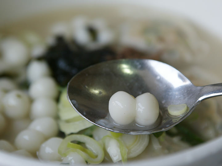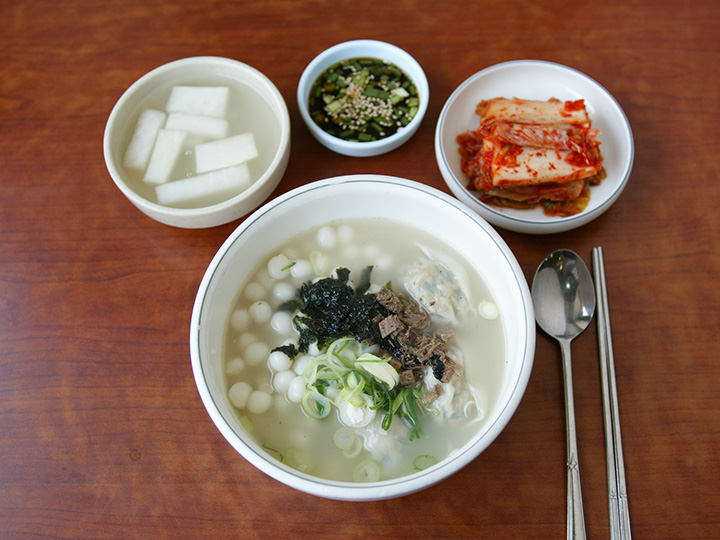 韓国餃子のマンドゥ料理専門店として人気の仁寺洞(インサドン) の「宮(クン)」。テーブル席が20席程度の店内はお昼時にはいつも混み合っています。店自慢の「開城餃子スープ」は、餃子を皿にとってスープと醤油ベースのつけダレをかけながら食べるというのが正しい食べ方。豆腐、キムチなどの具がたっぷり詰まった餃子のボリューム感と、あっさりしたスープに魅せられ、一日に3度このメニューを食べに来た常連さんもいるそうです。雪だるまみたいにかわいいお餅が入った、「チョレンイマンドゥクッ」も人気メニューの一つです。「ミシュランガイドソウル2017~2025」に紹介され、ますます人気が高まっています。