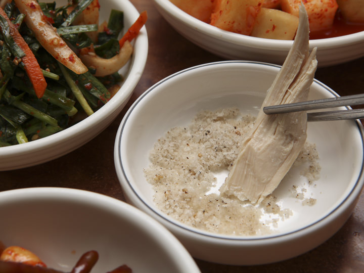 1969年創業の3代続くタッコムタン(鶏煮込みスープ)がおいしい老舗の「ファンピョンチッ」。現在は、初代オーナーの孫夫婦がお店を切り盛りしています。料理に使われるスープは、毎朝6時頃から鶏肉と骨を大鍋で煮込んで作られ、鶏のうまみがたっぷり染み渡ったったすっきりとした味わいです。タッコムタン以外にも、鶏鍋や蒸し鶏などの鶏を使った、おつまみ類(昼食時は注文不可)も豊富。地下鉄2・5号線が乗り入れる乙支路4街(ウルチロサーガ)駅、または地下鉄3・4号線の忠武路(チュンムロ)駅の中間あたりに位置。人気ホテルPJホテルの目の前にあります。