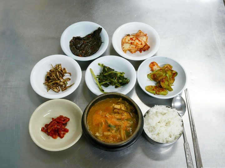 ご飯、汁物、キムチなどがすぐに出され、水は500mlのペットボトルごとくれたので、食事の後は持って出ることができました。