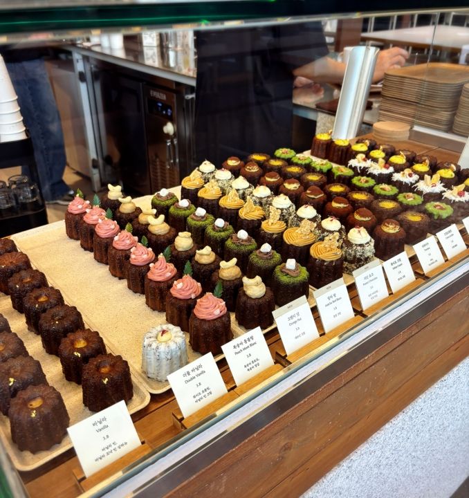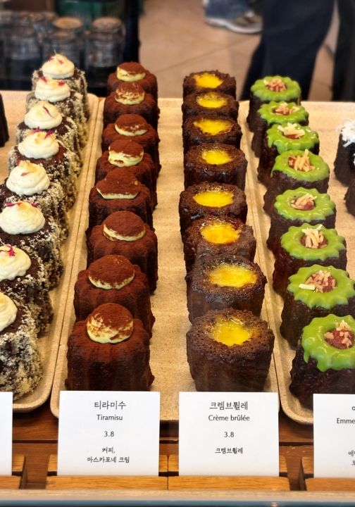 ショーケースに並ぶカヌレ。細部まで美しく咲いています。