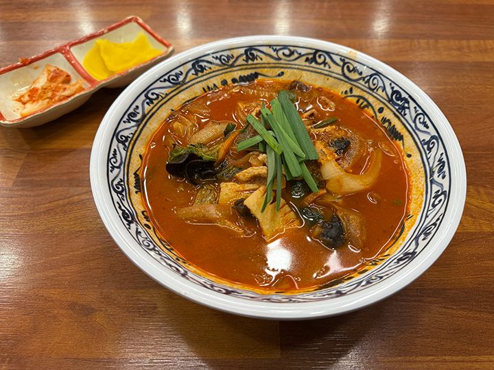 「トヤチャンポン」は韓国式中華の全国チェーン店です。社長が「本当においしいチャンポン」を目指し、約4年もの歳月をかけて全国各地の名店を食べ歩き、至高のスープと麺を完成させました。韓国のチャンポンは日本の長崎ちゃんぽんと違って激辛料理で有名ですが、「ドヤチャンポン」の真っ赤なスープは見た目ほど辛くなく、深みのあるコクが特徴。そして自家製麺が旨みたっぷりのスープをしっかり吸い込んでいます。辛いメニューが苦手な方には、辛くない「海鮮白チャンポン(ヘムルペッチャンポン)」や「ジャージャー麺」、「炒飯(ポックムパッ)」などがオススメ。お酒のおつまみに良い「酢豚(タンスユッ)」などのメニューもあります。