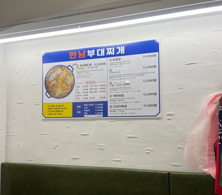 | 主なメニュー | プデチゲ、コムタン、チョンゴルなど |