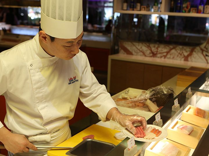 義母が食べ物が合わず2日経った頃、ホテルでの食事をしたいとのことでこちらのレストランをデイナーで予約してくれました。お高いですが、雰囲気も素敵で和洋中韓なんでも揃っていてまた種類がとても豊富。韓国料理コーナーにはユッケもありました。和食コーナーでは新鮮なお寿司もあります。デザートコーナーはパティシエの方にケーキを頼むとお皿にのせてくれます。お値段お高いですがまた行ってみたいと思いました。