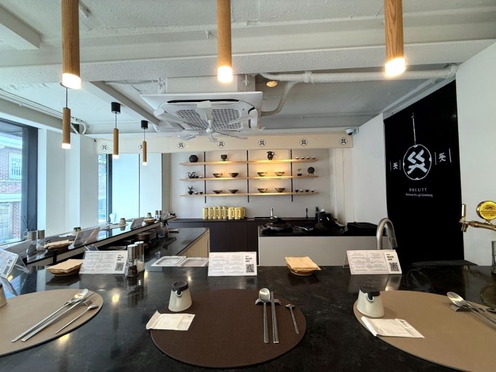 望遠駅の近くにあるテジクッパ(豚コムタン)のお店でランチをいただきました。一軒家をリフォームしたようなレストランで、カウンター席だけ約10席の造りで、中央に2つの大釜がおいてあります。インテリアも食器を中心としたコンセプトがしっかりしたデザインです。