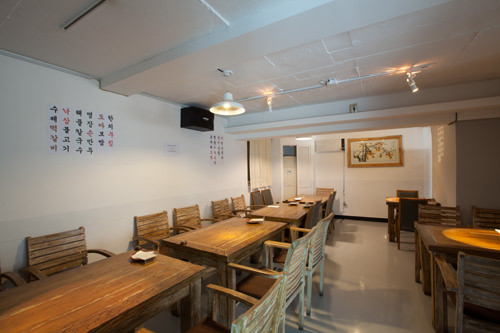 | 主なメニュー | マッコリ、チヂミ、どんぐりの寒天(ムッ)、茹で豚肉(ポッサム) |