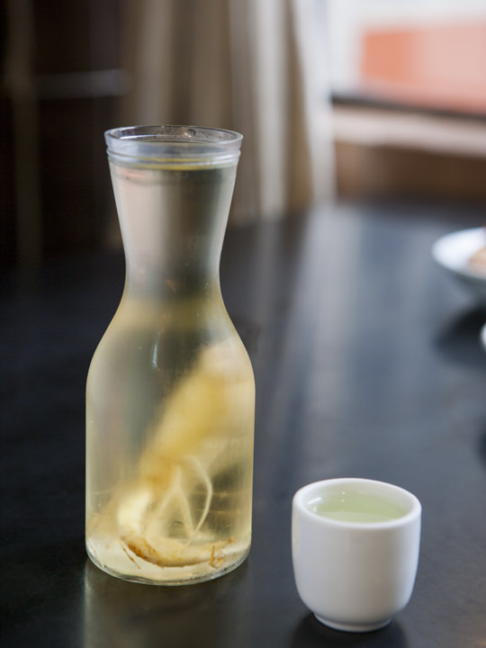 父が頼んだ山参参鶏湯はテーブルにフツーの参鶏湯が運ばれて来て、目の前で山参を入れてくれました。