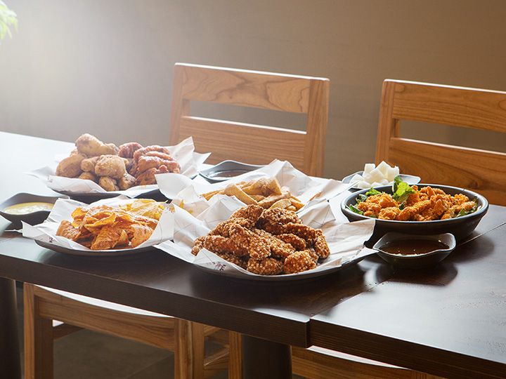 韓国全土に店舗を展開する「KyoChonChicken」。洗練されたインテリアとヘルシースタイルの韓国チキンで不動の人気を獲得。食材にこだわり、鶏肉や野菜は新鮮な韓国産を、調味料やソースも独自に研究・開発した無添加のものを使用しています。醤油味と唐辛子味をともに楽しめる「オリジナル、レッドオリジナル ハーフ&ハーフ」が人気のメニューです。「東大門(トンデムン)店」は、キョチョンチキンのチェーン店の中でも販売量・売上・来客数ともに1位を誇る人気ナンバーワン店舗。東大門ナイトショッピングに活用できる24時間営業なので深夜ご飯はもちろん、朝食にも利用OKな食事処です。ビールとチキンを組み合わせた「チメク」ができる飲み屋としても人気です。