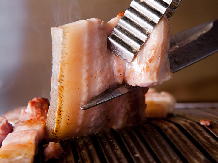 店構えが高級感漂っているので、一瞬高いのかなぁと思ってしまいますが、豚ですと、だいたい日本円で一人前1,500円くらいで食べられます。しかも、焼き担当のスタッフの方がついておいしく焼いてくれます。