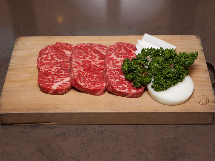 お肉そのもののお味を楽しむため、ごま油とお塩だけつけていただきます。
